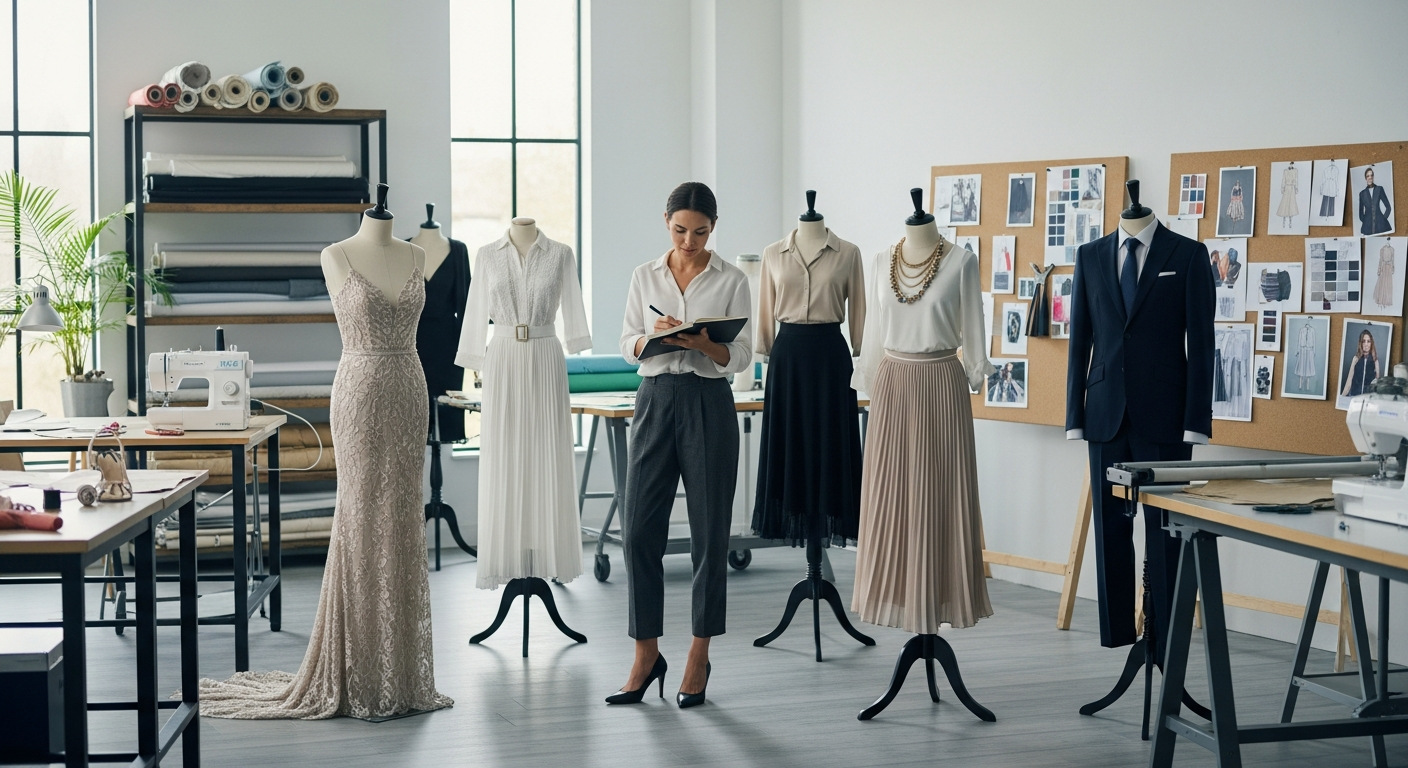 Fabrik dan siluet adalah dua elemen asas dalam reka bentuk pakaian yang mempengaruhi bagaimana garments itu kelihatan dan dirasakan. Pemilihan tekstil seperti kapas, linen, sutera, atau poliester memberi kesan kepada tekstur, aliran, dan keselesaan apparel. Contohnya, sutera memberikan kesan keanggunan dan mewah, manakala kapas menawarkan keselesaan dan kemampuan bernafas. Siluet, atau bentuk keseluruhan pakaian, seperti A-line, sheath, atau empire waist, memainkan peranan penting dalam menonjolkan atau menyembunyikan ciri-ciri badan tertentu, seterusnya mempengaruhi gaya dan feminine appeal sesuatu outfit.